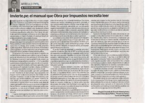 El Invierte.pe establece las reglas técnicas y procedimientos que debe seguir todo proyecto de inversión pública en el Perú y constituye la otra cara de la misma moneda del mecanismo OxI, sin embargo, al ser temido y resistido, proyectos viables se paralizan, empresas serias se retiran y funcionarios públicos prefieren no hacer nada antes que arriesgarse a una observación de la Contraloría General de la República.