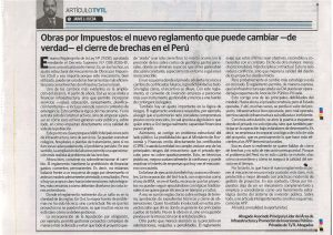 El nuevo Reglamento de la Ley Nº 29230, aprobado mediante el Decreto Supremo N.º 038-2026-EF, no es una actualización menor. Es, en los hechos, un ajuste estructural del mecanismo de Obras por Impuestos (OxI) y eso importa porque este mecanismo, bien utilizado, puede ser una de las herramientas más eficientes para cerrar brechas de infraestructura en el país.